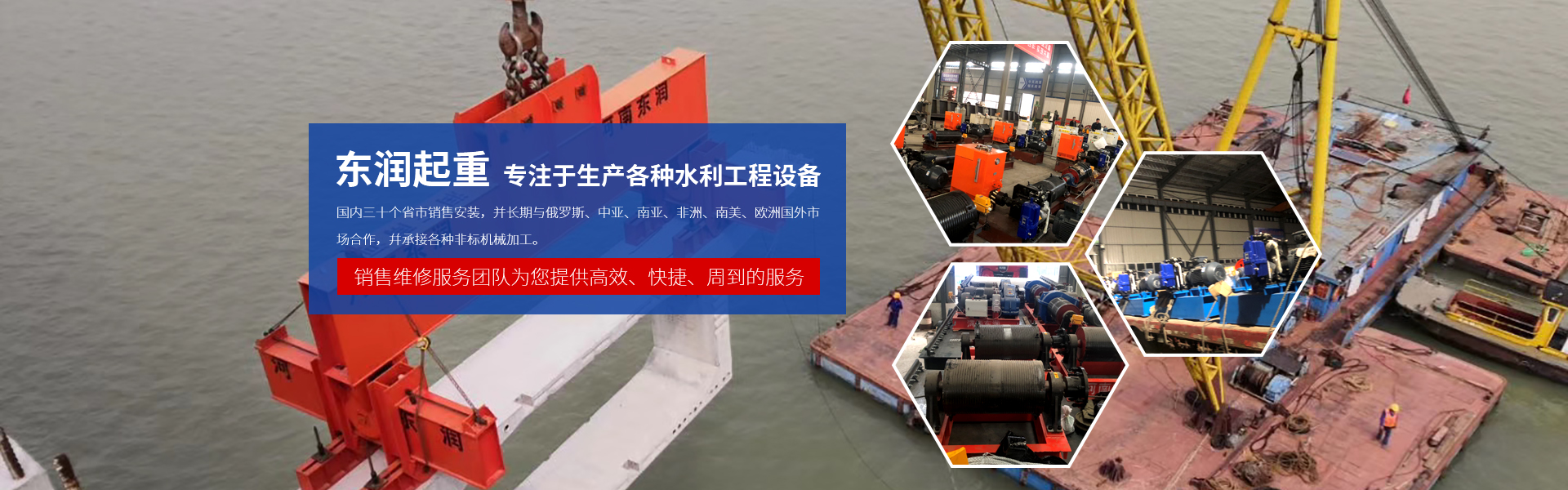 河南東潤(rùn)起重設(shè)備有限公司始建于1992年,公司位于河南省起重工業(yè)園區(qū),交通便利,環(huán)境優(yōu)美,借得天獨(dú)厚的地理位置,和過(guò)硬的產(chǎn)品質(zhì)量,迅速成長(zhǎng)壯大,具實(shí)力的水利工程、起重配件生產(chǎn)安裝于一體的生產(chǎn)廠商。  東潤(rùn)起重以中國(guó)水利工程為依托,專注于生產(chǎn)各種水利工程設(shè)備,公司卷?yè)P(yáng)機(jī)、啟閉機(jī)等水工設(shè)備遠(yuǎn)銷海內(nèi)外,國(guó)內(nèi)三十個(gè)省市銷售安裝,并長(zhǎng)期與俄羅斯、中亞、南亞、非洲、南美、歐洲國(guó)外市場(chǎng)合作,幷承接各種非標(biāo)機(jī)......... 查看更多>>